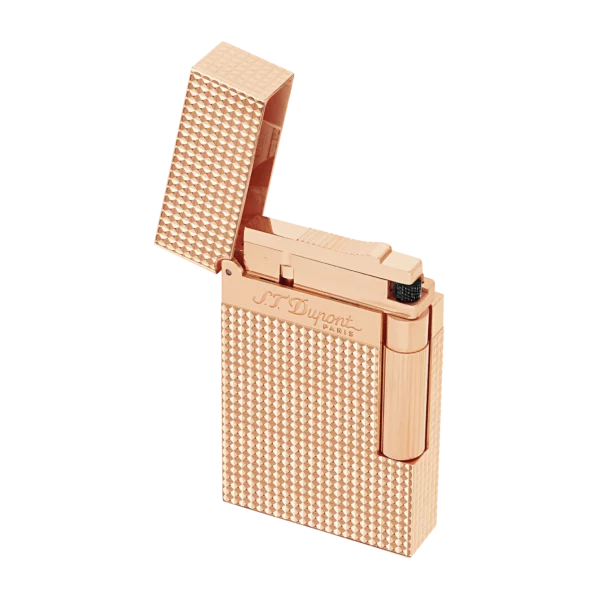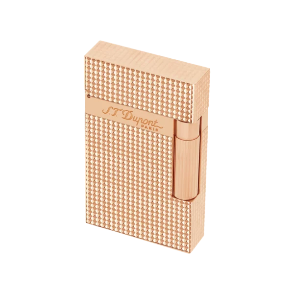Za upaljač ST Dupont Ligne 2 – Guilloche sa završnom obradom u roze zlatu i dezenom „diamond point“, personalizacija – graviranje nije moguće.